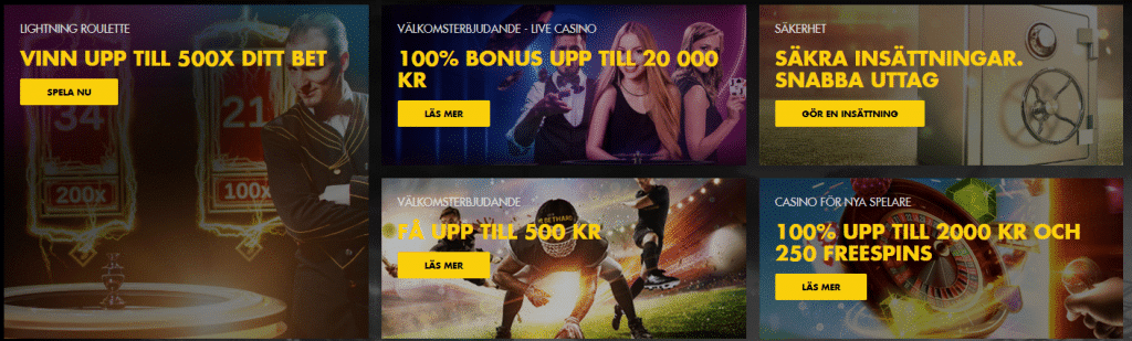 - Välkomsterbjudande för live casino - 100% upp till 20000 kronor.