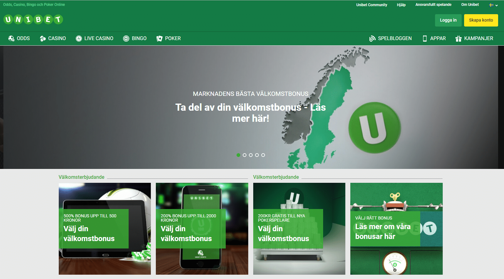 Unibets olika välkomstbonusar